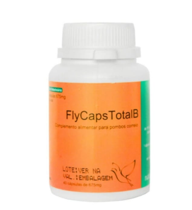 Fly CapsTotal B pela sua composição equilibrada em vitaminas B e óleos, é o complemento de eleição quando se preparam pombos para provas duras e quando se pretende recuperar pombos em convalescência de doenças debilitadoras ou crónicas.
