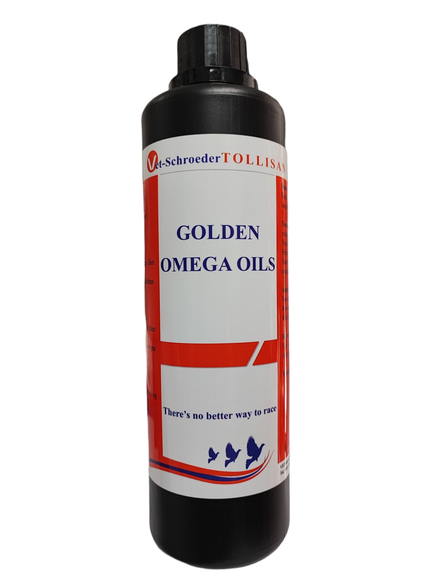 Esses ácidos graxos desempenham um papel especial na manutenção da saúde e do desenvolvimento da condição em pombos-correio. Golden Omega Oils são fornecidos junto com aminoácidos (Amino-Forte) e levedura de cerveja (Levulac). Os óleos são indispensáveis durante a época de reprodução, muda e corrida.