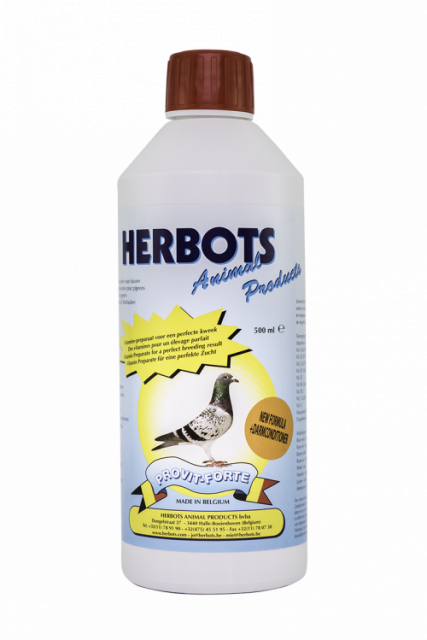 Provit Forte contém vitaminas A + D3, vitamina E, vitamina B1, B2, B6, B12, nicotinaminas + dexpantenol que favorecem as posturas e desenvolvimento dos borrachos.