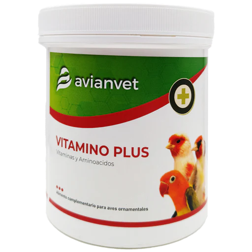 Vitamino Plus Avianvet  é um alimento complementar para aves. É um suplemento em pó de vitaminas e aminoácidos essenciais para aves em gaiola.